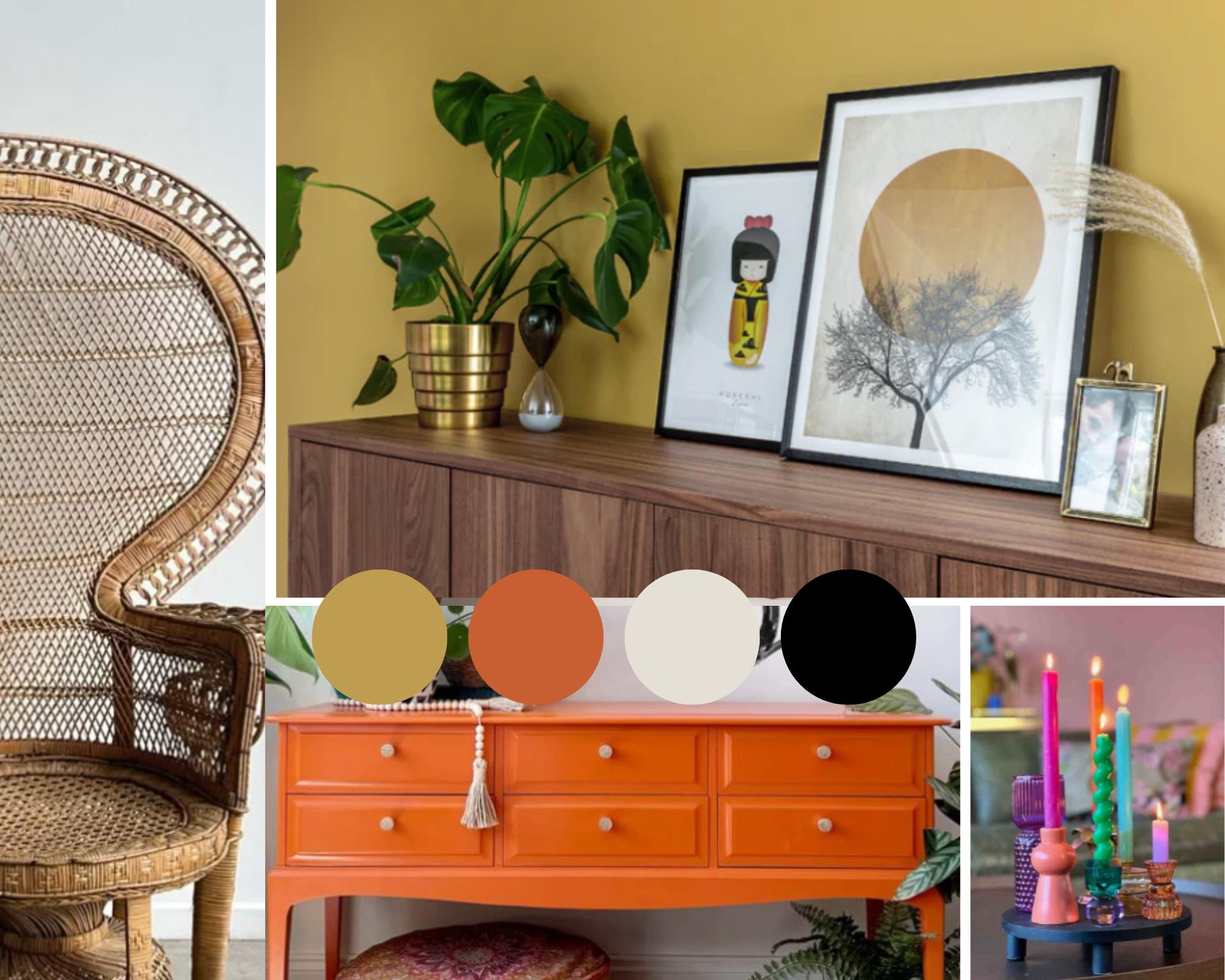 Je stuurt mij wat foto’s van de ruimte waar het om gaat. Je hoeft je kamer niet netjes op te ruimen, daar kijk ik wel doorheen! Geef aan wat je mist of zoekt en wellicht ook wat je vooral niet wilt. Waar nodig stuur ik je nog wat aanvullende vragen. Daarna ontvang jij jouw moodboard met met kleurenschema voor de desbetreffende ruimte. Het mooie is, dat je dit kunt gebruiken als basis (een voorbeeld zie je op de foto).